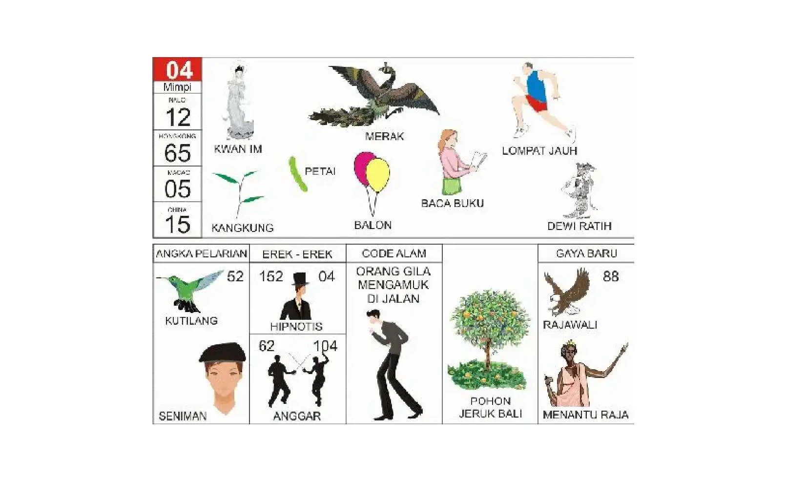 Angka pelarian untuk 04 adalah 52 dengan simbol burung kutilang.