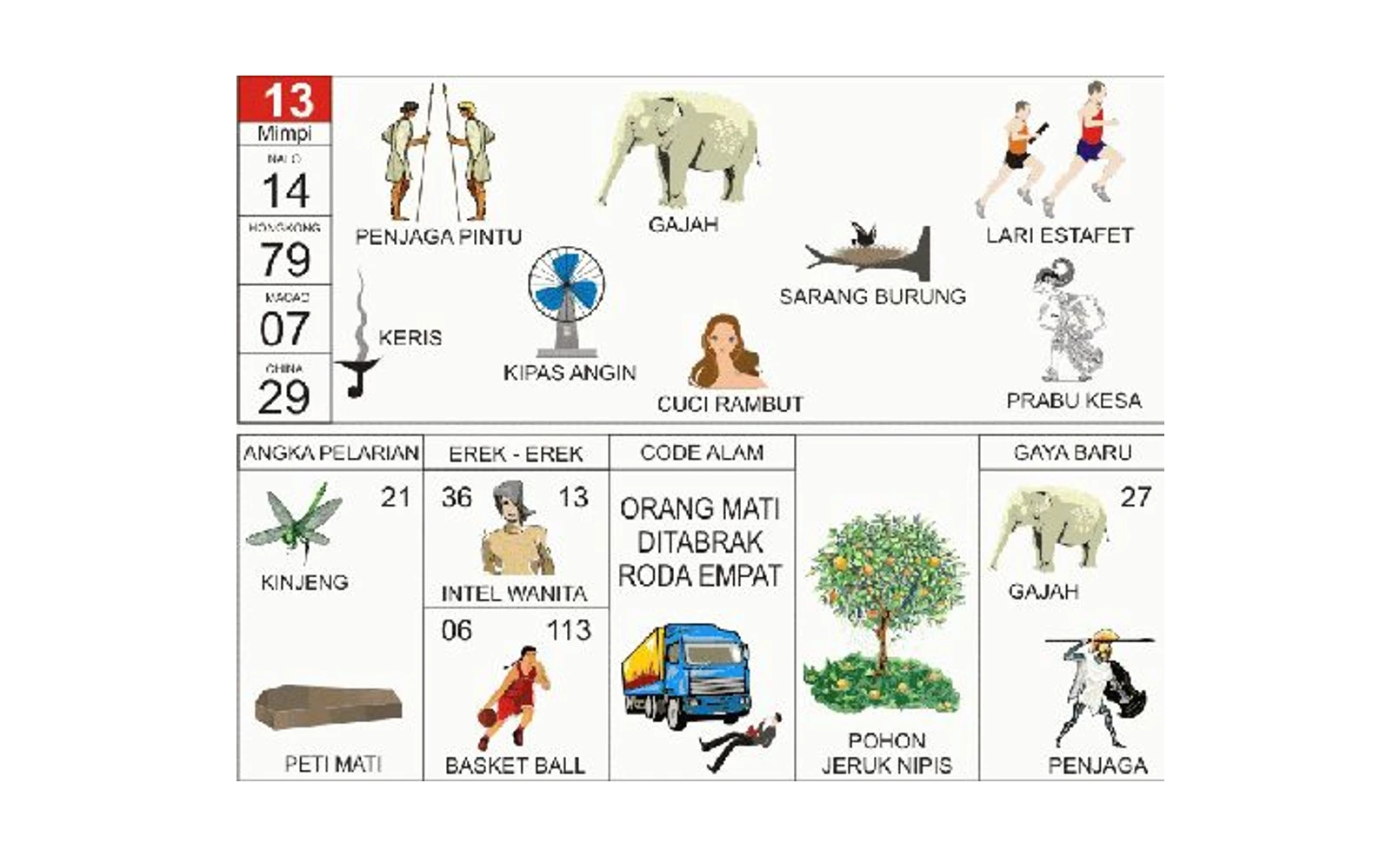 Tabel Data Lengkap Erek Erek 13