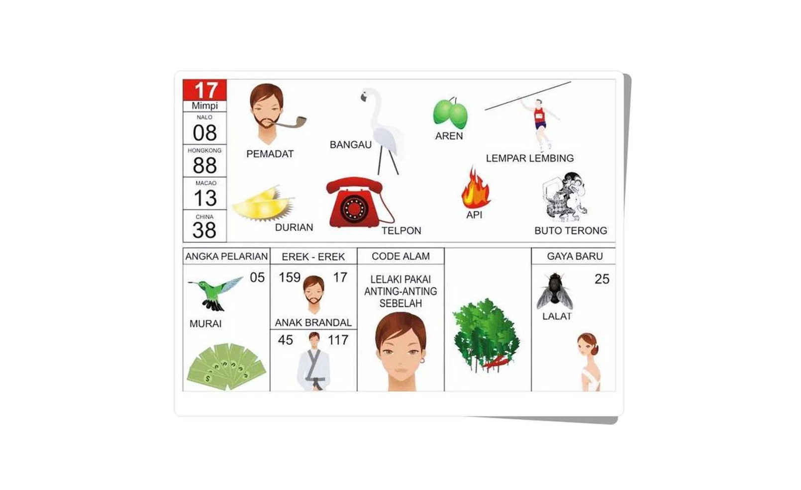 Tambahan | Nalo 08, Hongkong 88, Macao 13, China 38 | – |