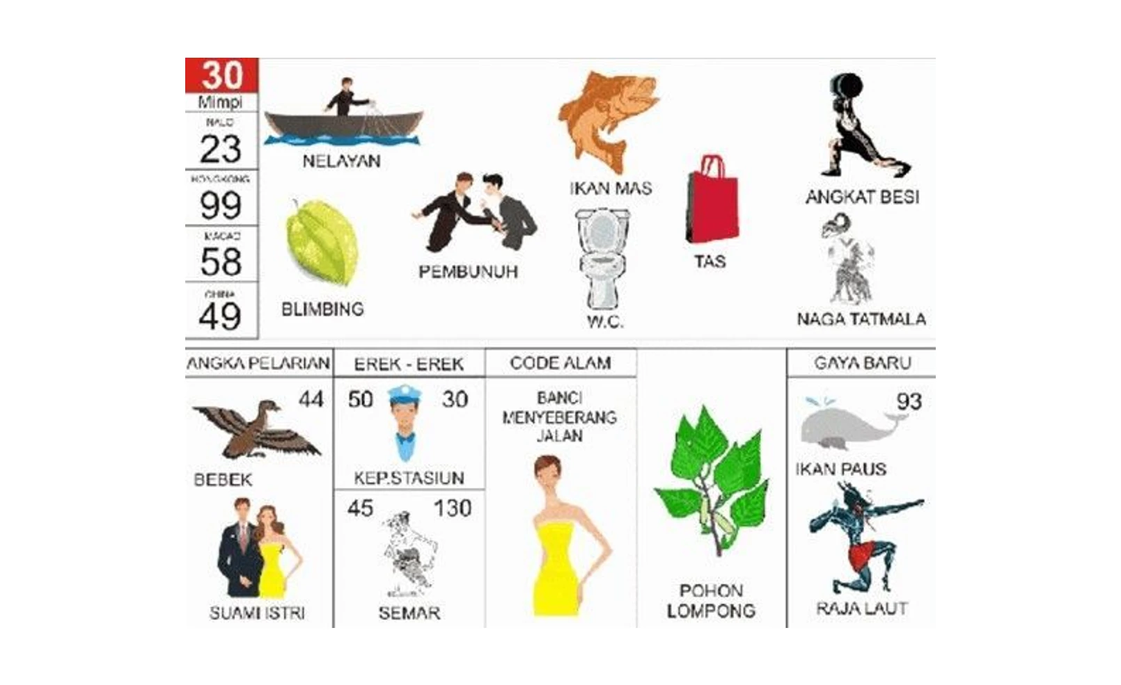 Tabel Data Lengkap Erek Erek 30