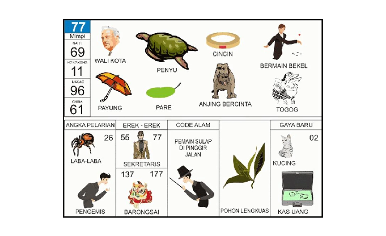 Tabel Data Lengkap Erek Erek 77