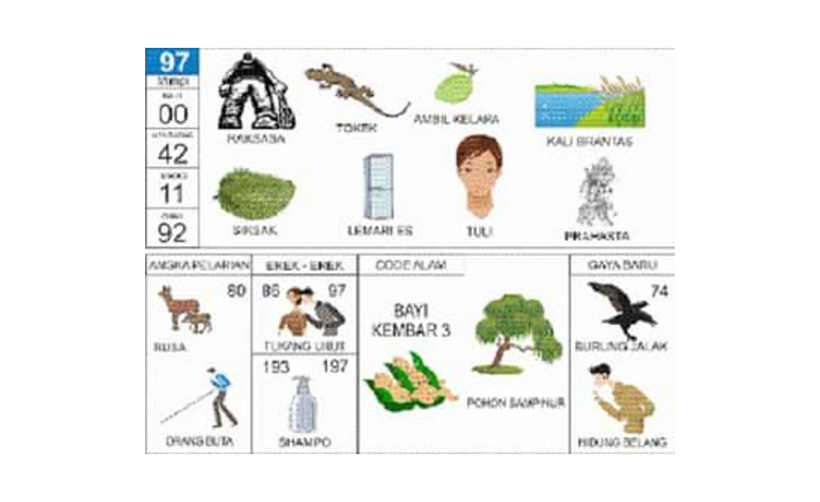Dalam gambar erek erek 97, terdapat berbagai simbol penting yang memiliki makna masing-masing: