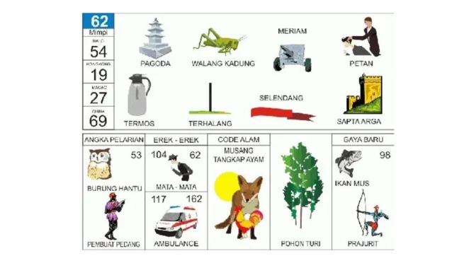 Kode Alam | Musang tangkap ayam | Pertanda keberuntungan | 62 |