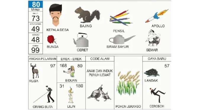 | 3 | Burung puyuh bertelur | Simbol kesuburan dan keberhasilan usaha | 97 – 73 |