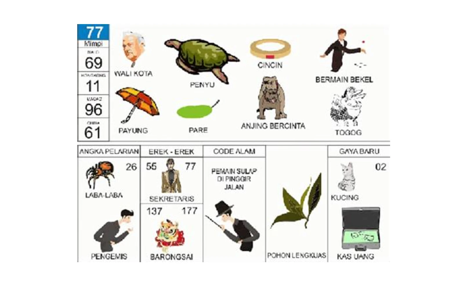 | Angka Keberuntungan | 02, 55, 77, 96 | Simbol datangnya rezeki dan cinta |