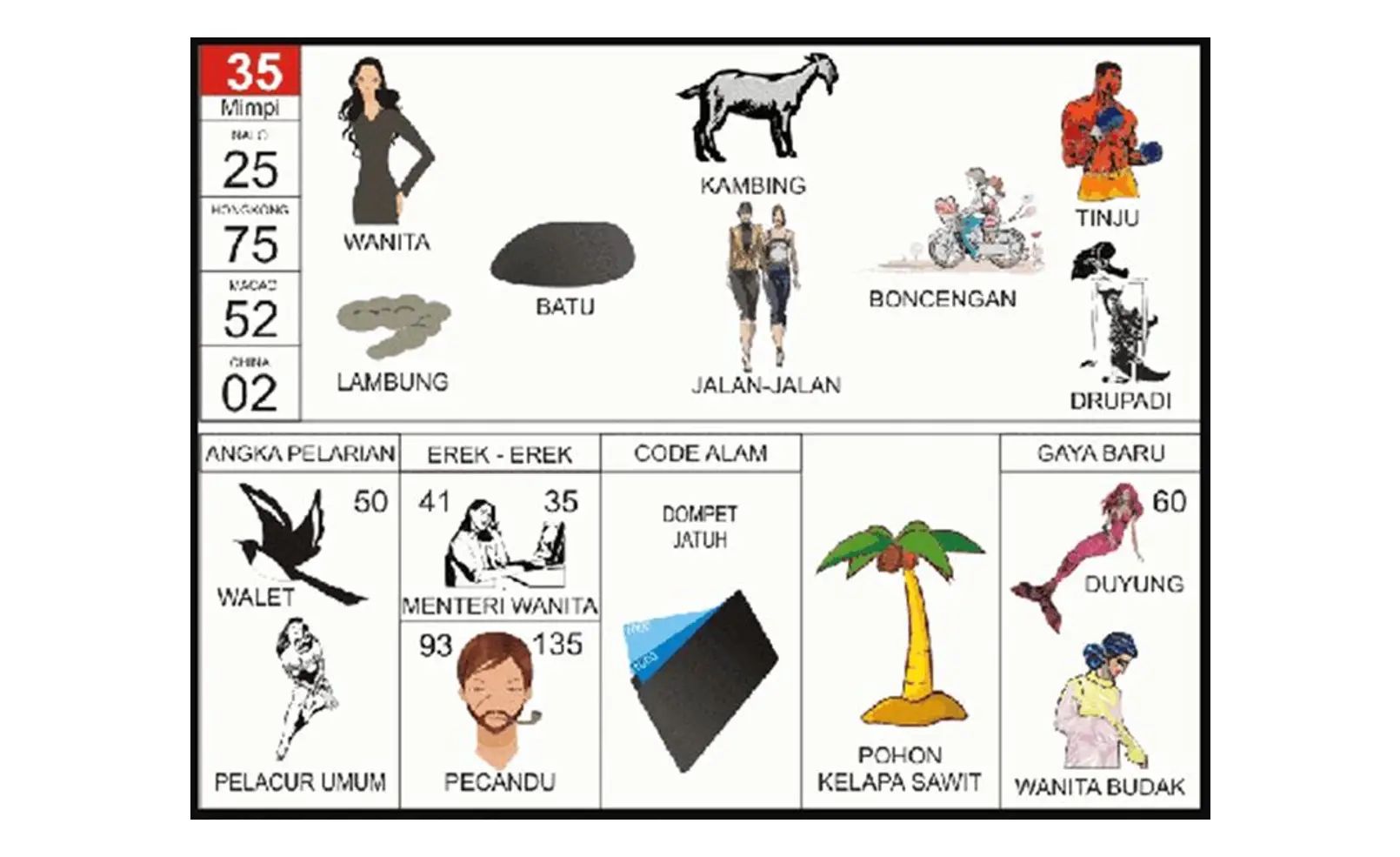 | Wanita | Kehidupan sosial dan asmara | 25 | Simbol mimpi |