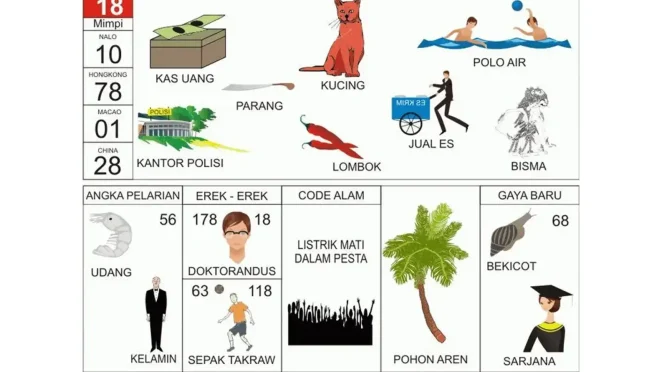 • Karakter pendukung dalam tabel mimpi yang relevan: Doktorandus (178), pemain sepak takraw (63), udang (56), pohon aren, dan bekicot.