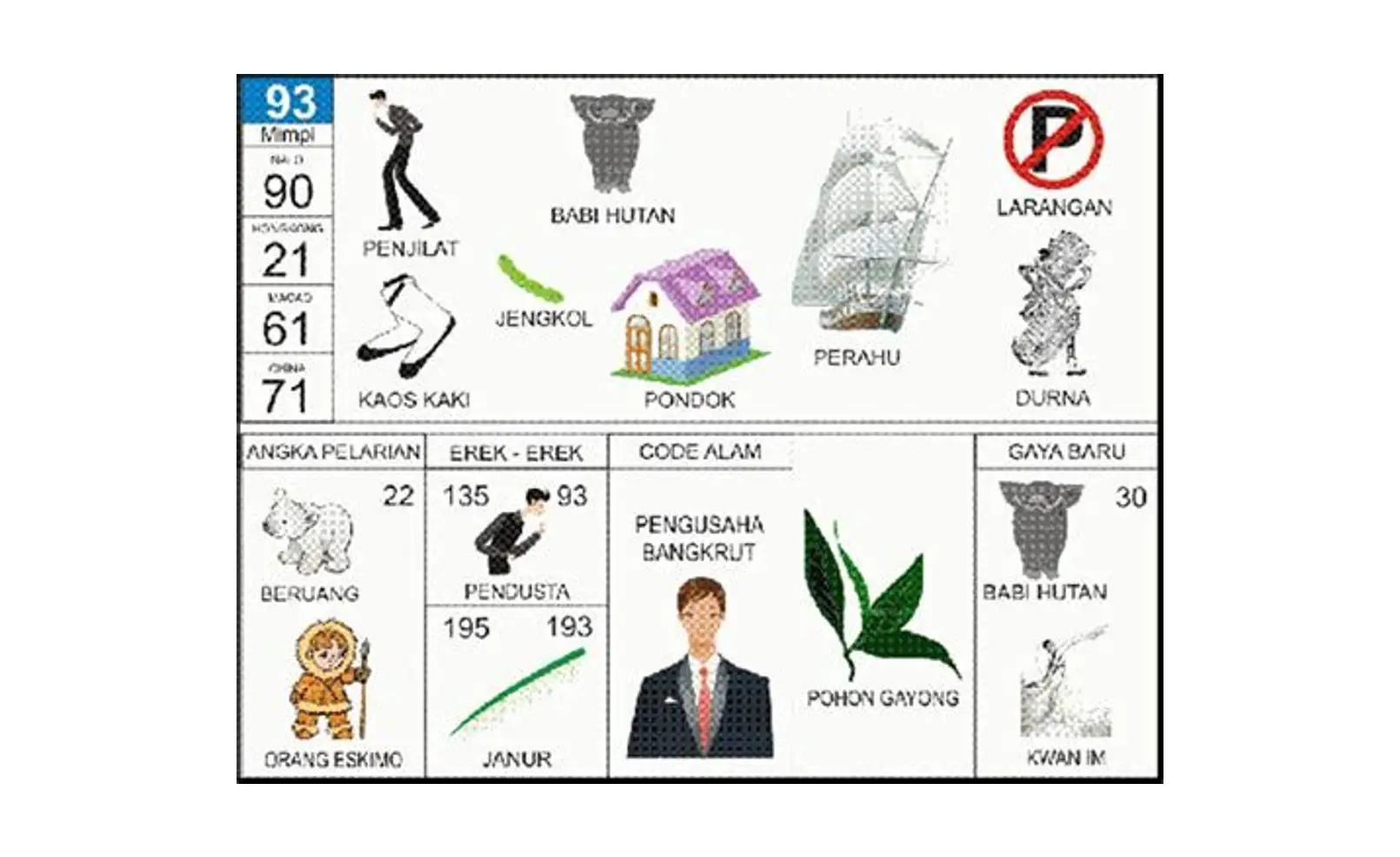 | Kode Alam | Pengusaha bangkrut (tanda untuk introspeksi diri) | 135 |