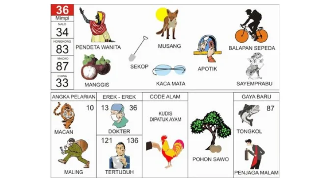 Cocokkan simbol utama dan pendukung dalam tabel erek erek.