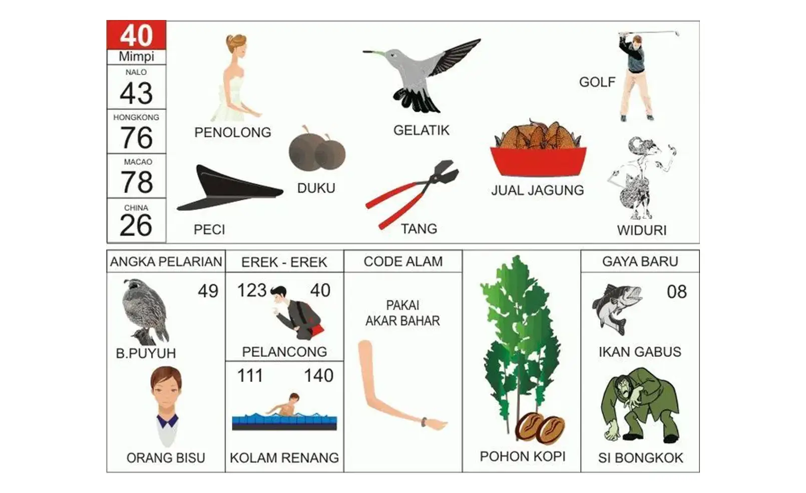 | Minum Kopi | Kedamaian batin dan keberuntungan | 08 – 49 |