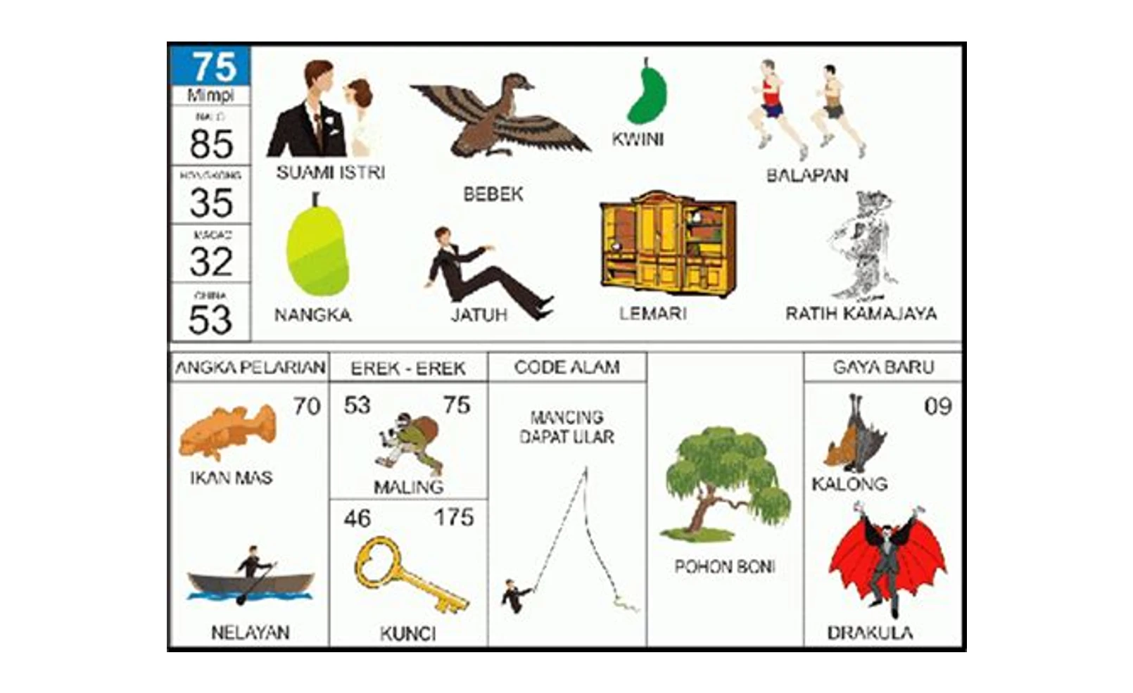 | 70 | Ikan Mas | Rezeki besar | Keberuntungan datang |