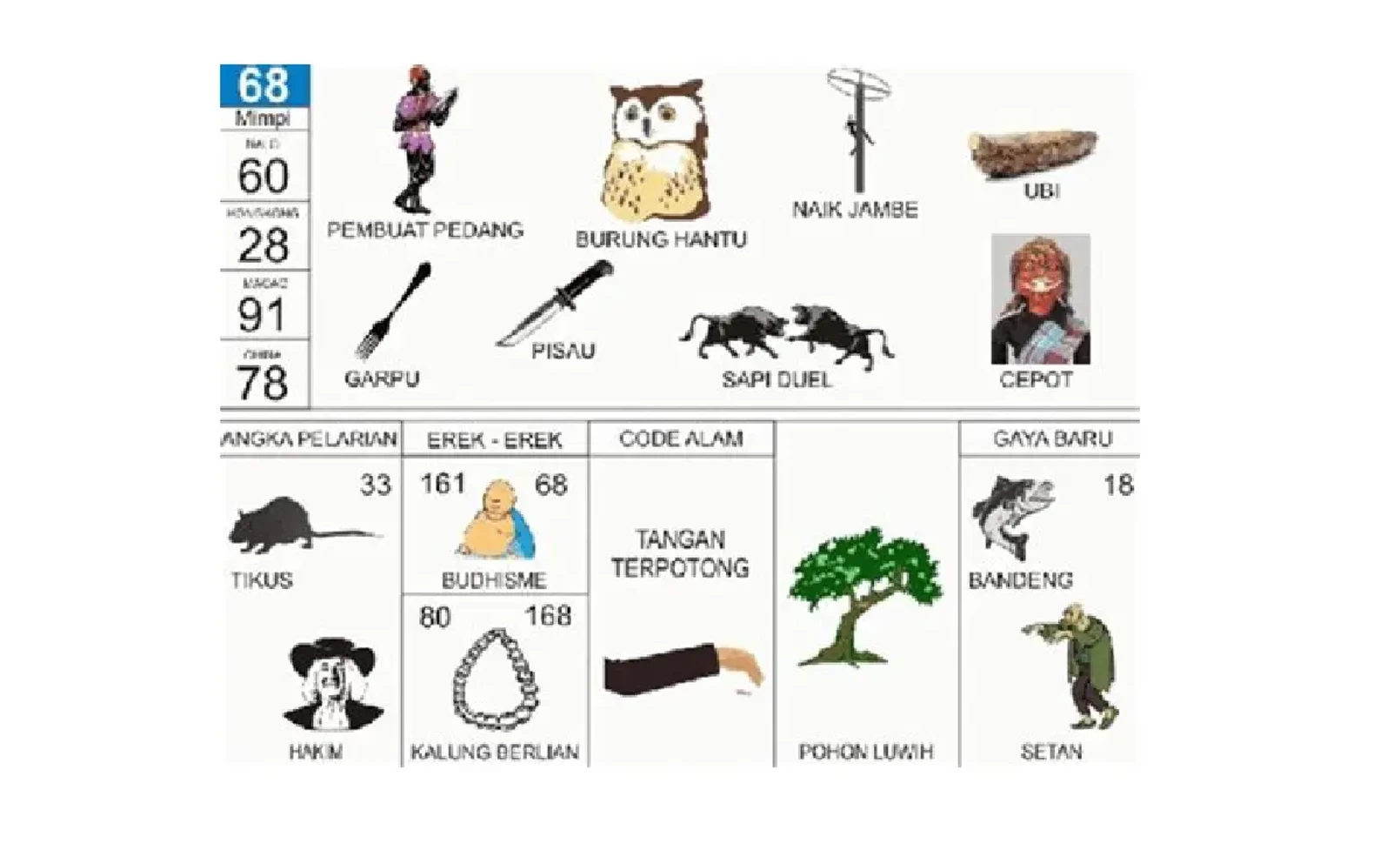 Tabel Data Lengkap Erek Erek Pedang
