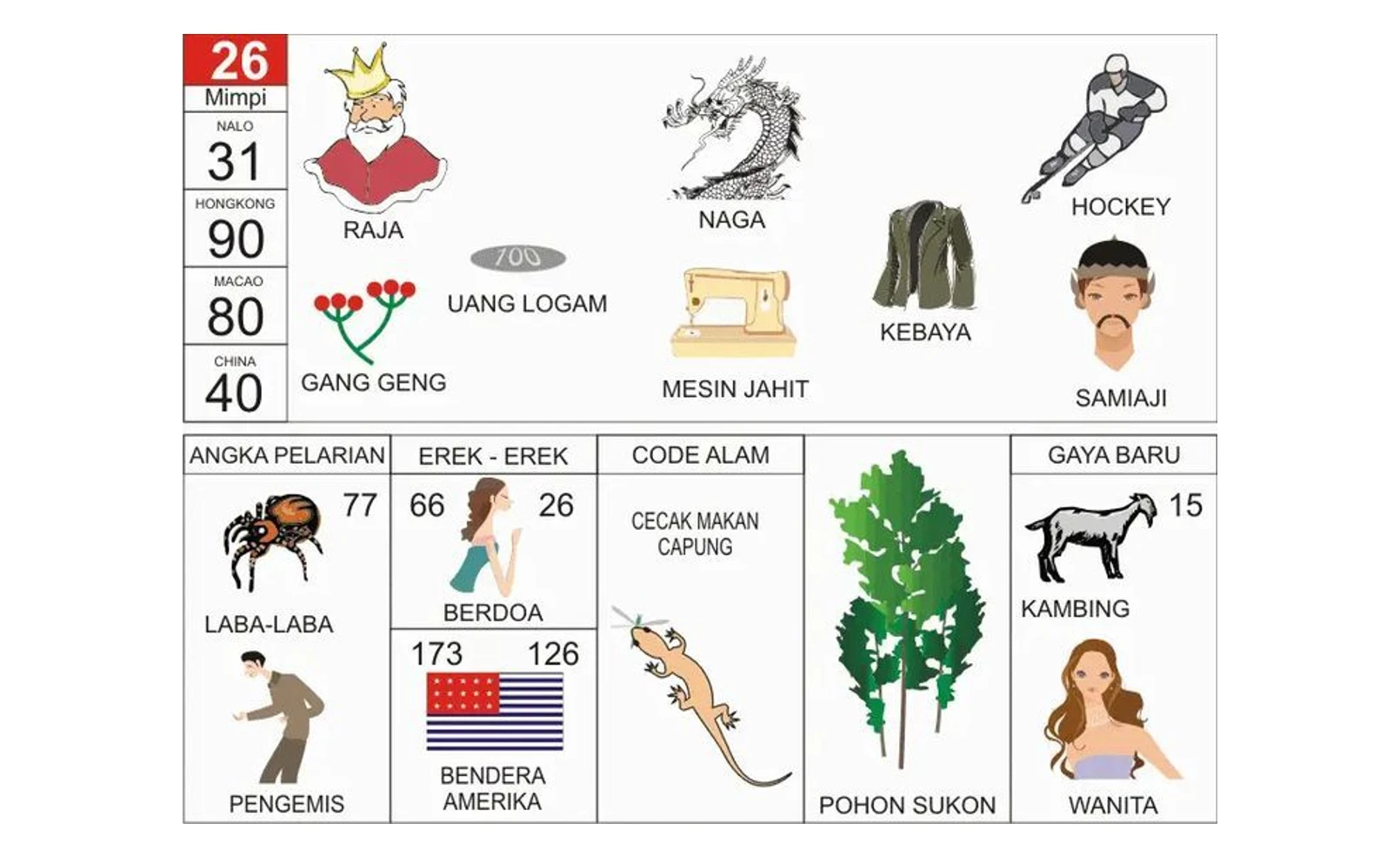 Tabel Data Lengkap Erek Erek Raja