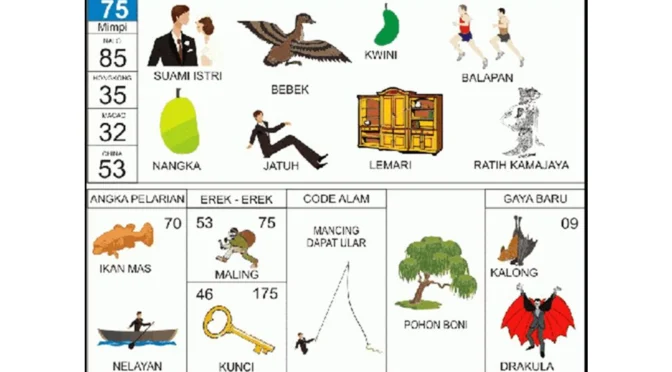 Dalam gambar erek erek nomor 75, pasangan suami istri digambarkan sebagai simbol utama yang memiliki banyak turunan makna dan angka penafsiran. Berikut beberapa simbol yang sering dikaitkan dengannya: